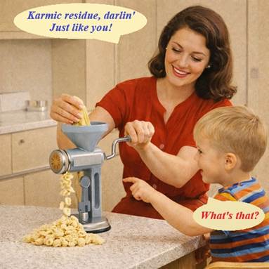 no ontological clean slate anywhere in the system. So when the mother says: “Karmic residue, Darling. Just like you.” she is