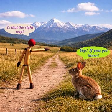distant mountains, while a rabbit—positioned off the path—responds with a conditional